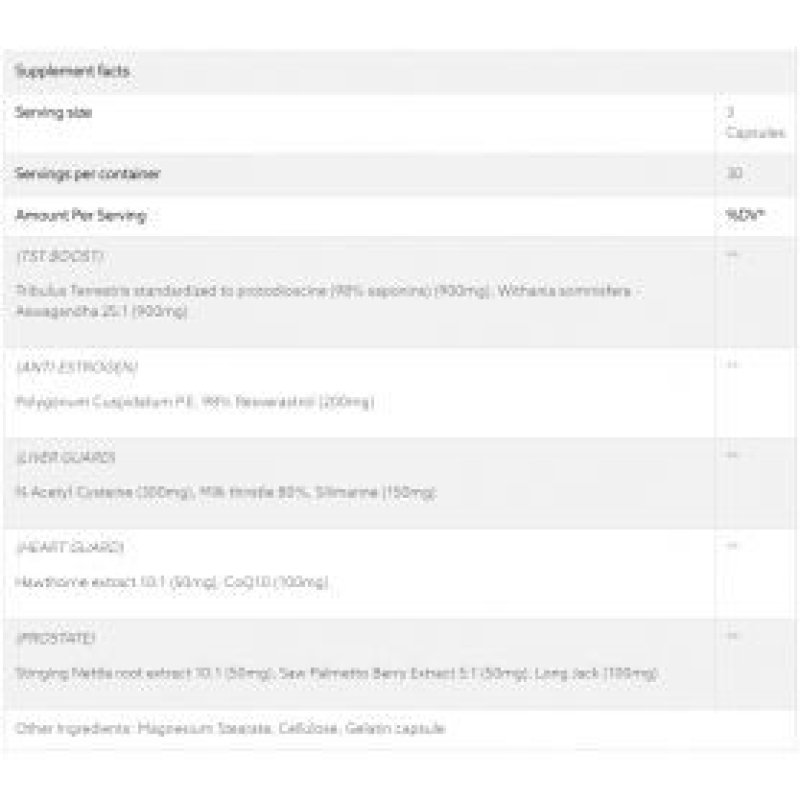 | التأثيرات | زيادة مستويات هرمون التستوستيرون، وتعزيز قوة العضلات، وتحسين الصحة الجنسية |